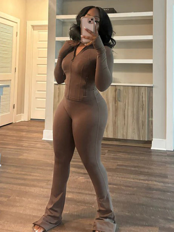 Sportswear for women Sexy tight-fitting long-sleeved, slightly flared two-piece suit